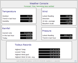The WeatherConsole is an simple web page presenting 'live' and automatically updating information to viewers. It is a text based display, and is easily customised to suit your own site design.